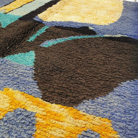 Laniba | Blue & Yellow Beni Ourain 5x7 Moroccan Rug | 5'x7'64 Ft | 152x233 cm