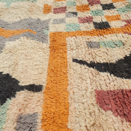 Makhlala | Vintage Beni Ourain Rug 5x8 Multicolored Wool Area Rug | 5'08x8'04 Ft | 155x245 cm