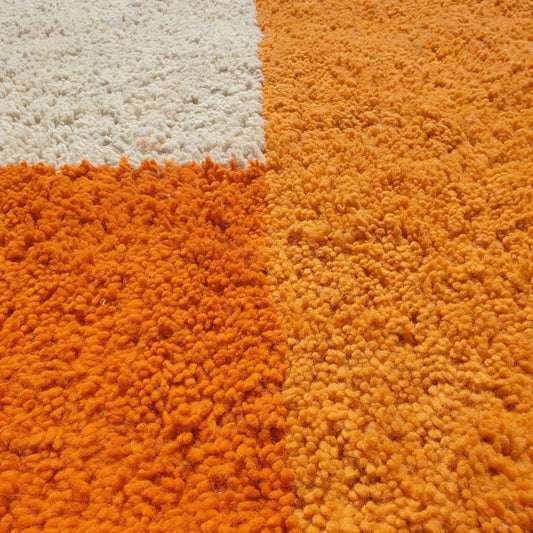 Hanily | Ivory and Orange Beni Ourain Moroccan Rug 5x8 | Warm Minimalist Decor | 5'18x7'84 Ft | 158x240 cm