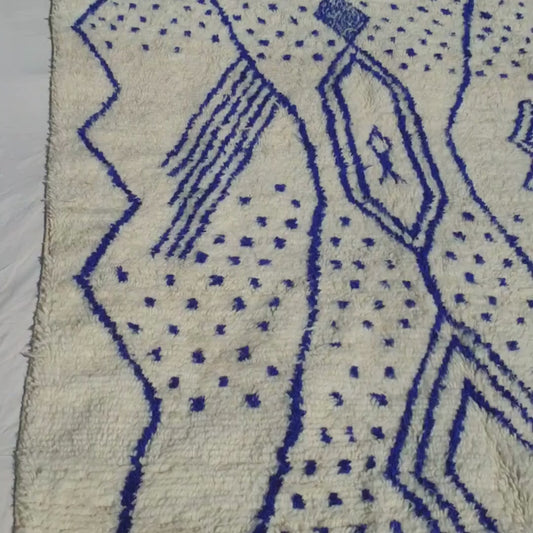 Nirjas - White & Blue Moroccan Rug Azilal | Authentic Handmade Berber Rug | 6'x10'17 ft | 183x310 cm