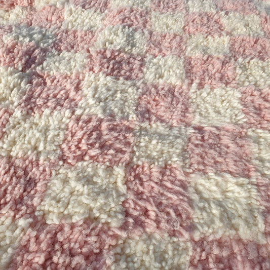 Dama | Pink Checkered Beni Ourain 5x8 Moroccan Rug | 5'58x8'43 Ft | 170x257 cm