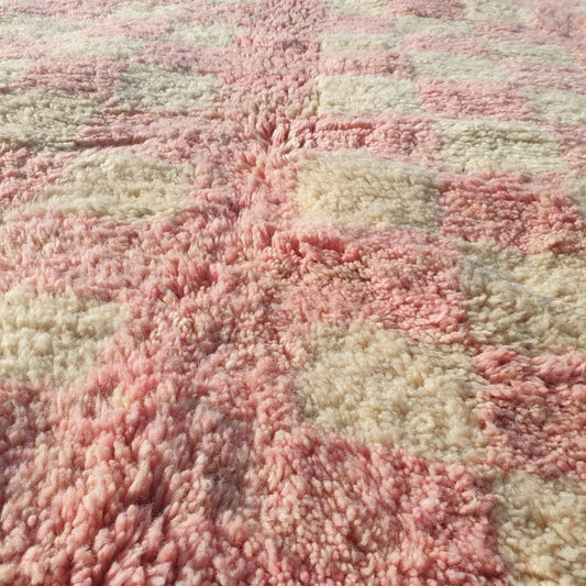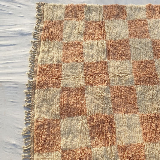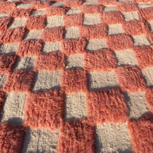 Dabachi | Checkered Moroccan Rug 6x9 Rust Pink Beni Ourain Ultra Soft | Authentic Berber wool Beni Rug | 6'92x9'45 Ft | 211x288 cm
