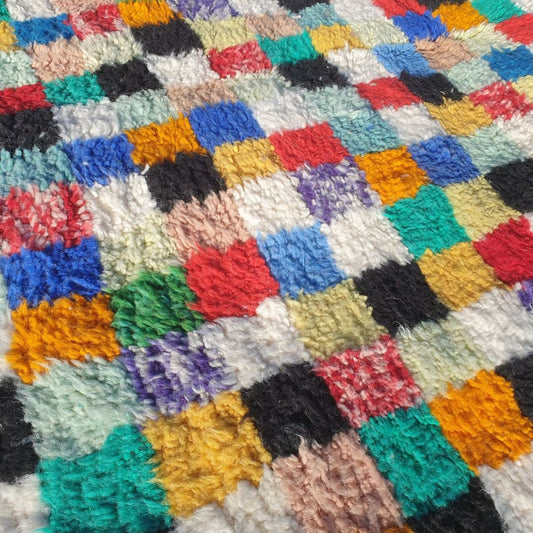 Talina | Multicolored Checkered Authentic Soft Beni Ourain Moroccan Rug | 4'86x8'40 Ft | 148x256 cm