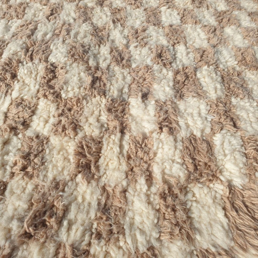 Damia | Beige & White Checkered Beni Ourain 5x8 Authentic Soft Moroccan Rug | 5'54x8' Ft | 169x243 cm