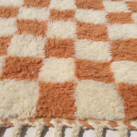 Damia | Orange & White Checkered Beni Ourain 5x8 Authentic Soft Moroccan Rug | 4'96x8'10 Ft | 151x247 cm