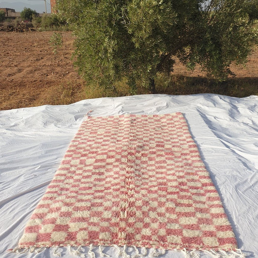 Checkered Rug Beni Ourain Moroccan Pink Carpet | 9x5 Ft | 2,73x1,48 m | DAMA | 100% wool handmade