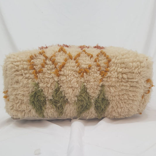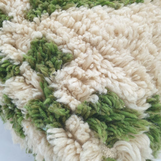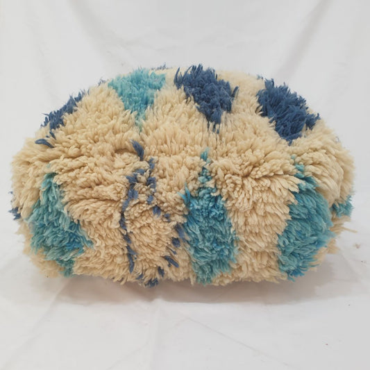 Dotted Shag Moroccan Wool Floor Cushion – Beige Plush Pouf 24x24x8 inch | 60x60x20 cm