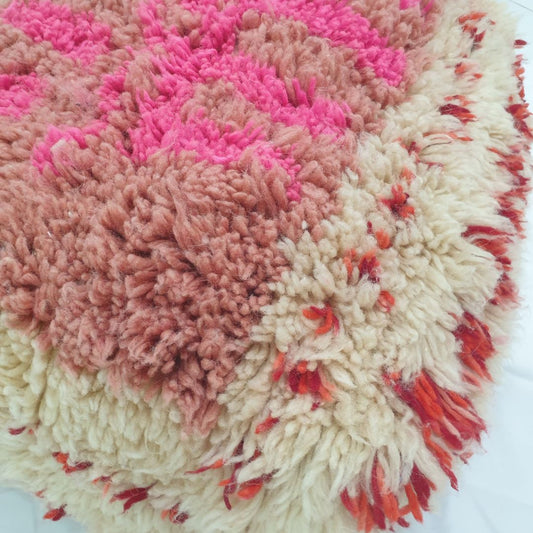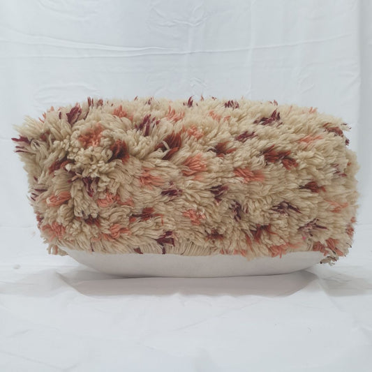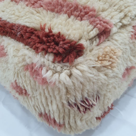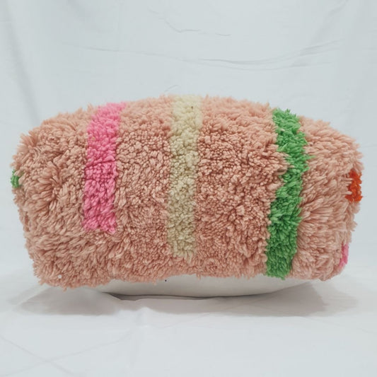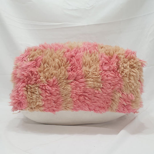 Shaggy Moroccan Wool Floor Cushion – Pink & Beige Plush Pouf 24x24x8 inch | 60x60x20 cm