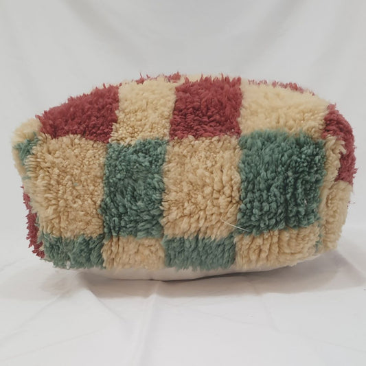 Boho Handmade Moroccan Pouf – Colorful Checkered Floor Cushion 24x24x8 inch | 60x60x20 cm