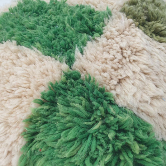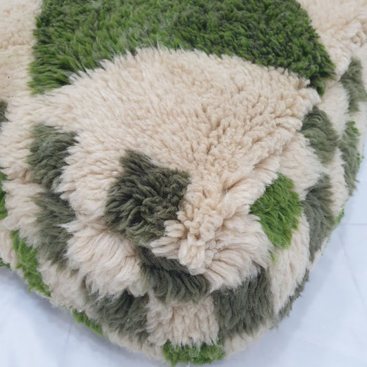 Calming Handmade Moroccan Pouf – Green Checkered Floor Cushion 24x24x8 inch | 60x60x20 cm