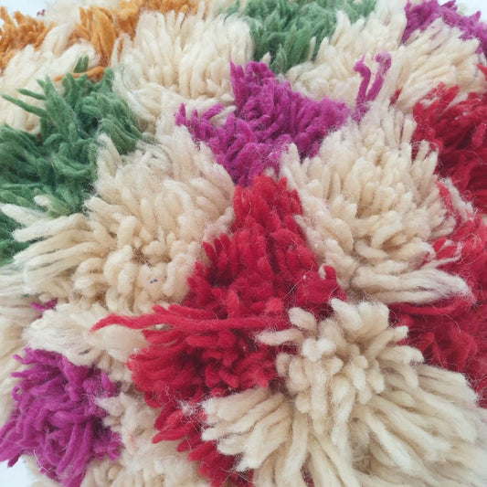 Vibrant Handwoven Beni Ourain Pouf – Colorful Patchwork Floor Cushion 24x24x8 inch | 60x60x20 cm