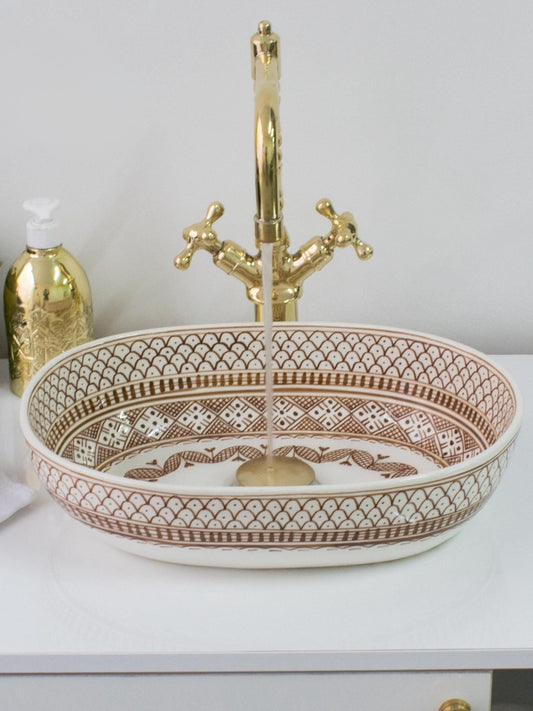 Nabeul - Hand-Painted Oval Ceramic Vanity Sink – Artisan-Made Bathroom Basin - (ETAT)