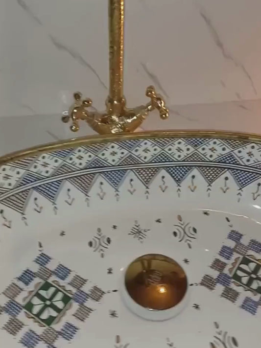 Oslo - Handmade Moroccan Oval Ceramic Sink – Tribal Geometric Top Counter Vessel Sink - (ETAFS)