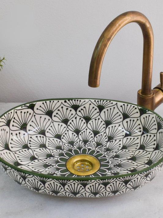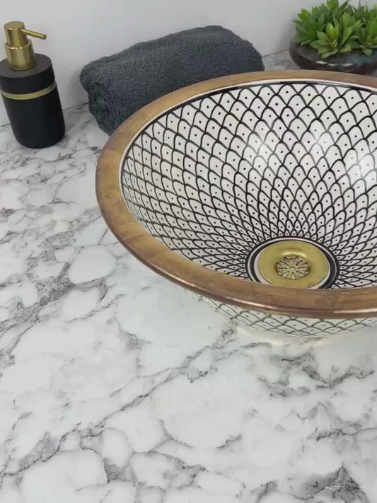 Temara - Hand-painted Ceramic Bathroom Sink With Brass Rim – Elegant, Customizable and Lead-Free - (ETMMT)
