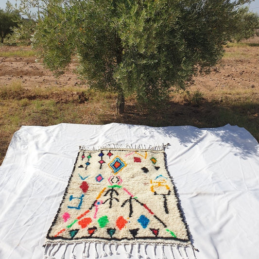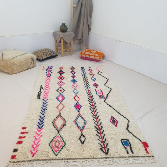 White Azilal Moroccan Rug | Vintage Moroccan Rug | Vintage Berber Rug | Moroccan Area Rug | Authentic Handmade Moroccan Wool Rug | 5'1x3'3 ft