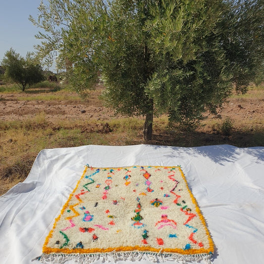 White Azilal Moroccan Rug | Vintage Moroccan Rug | Vintage Berber Rug | Moroccan Area Rug | Authentic Handmade Moroccan Wool Rug | 4'9x3'3 ft