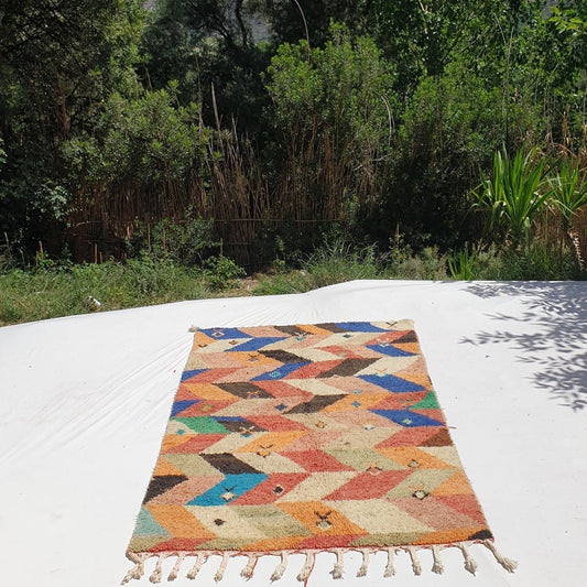 Zinaga - Moroccan Boujad Berber Rug | Colorful Authentic Handmade Bedroom Rug | 8'4x4'7 Ft | 2,55x1,44 m