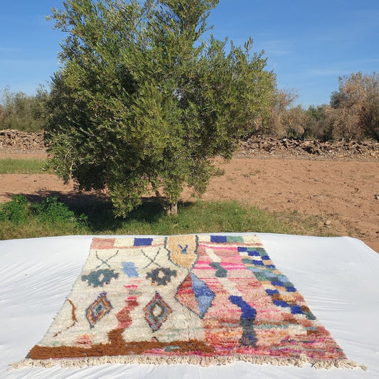 Bhalba - Moroccan Rug Beni Ouarain | Colorful Authentic Berber Handmade Bedroom Rug | 8'17x5'35 Ft | 2,49x1,63 m