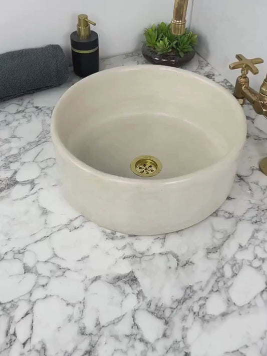Casablanca - Round White Bathroom Sink – Elegant, Handmade, Customizable, and Lead-Free - (ETMMT)