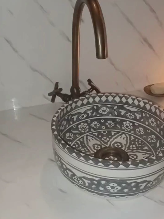 Bouarfa - Gray Handcrafted Round Bathroom Sink – Elegant, Customizable, and Lead-Free - (ETAFS)