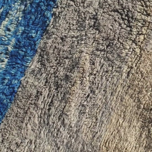 Customized Tinagha | Beni Ourain 7x8 Blue Moroccan Rug Ultra Soft | Handmade Berber Wool Carpet