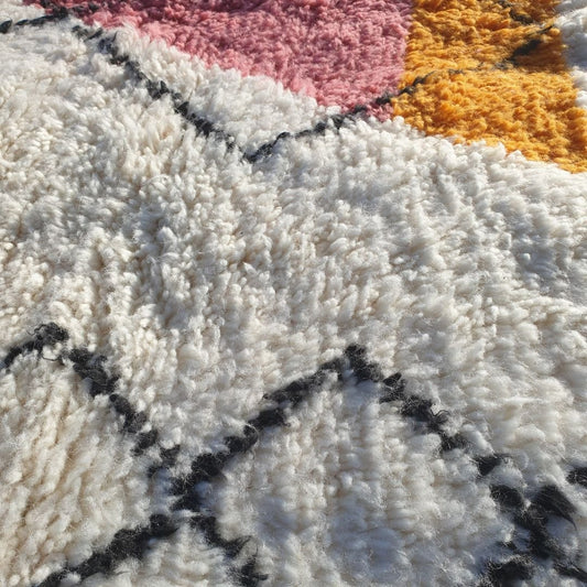 Tiwli | White & Pink Moroccan Rug 3x5 Beni Ourain Ultra Soft | 3'77x5'44 Ft | 115x166 cm