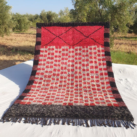 Rawja - Red & Black 6x9 Moroccan Rug Beni Mrirt Luxurious Ultra Soft and Thick | Berber Handmade Wool Carpet | 6'63x9'38 Ft | 202x286 cm