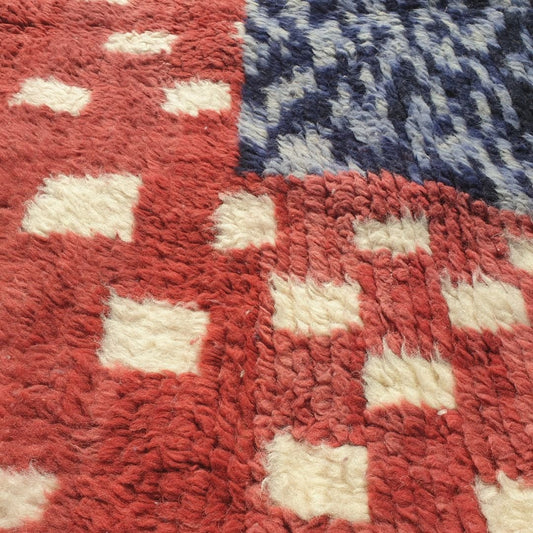 Malkina | Red and Blue Moroccan Rug 5x8 - Handcrafted Beni Ourain Wool | 4'86x8'13 ft | 148x248 cm