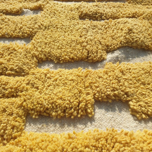 Mitracia | Yellow Moroccan Rug 5x8 - Handmade Beni Ourain Wool Rug | 5'02x8'36 ft | 153x255 cm