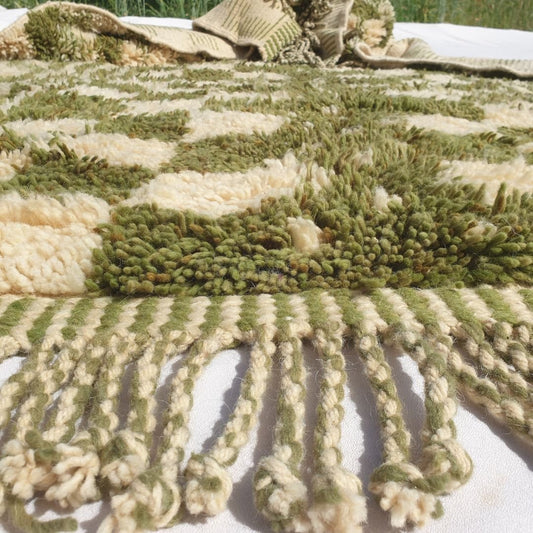 Mouassine | Checkered Olive Green Moroccan Rug 6x9 Beni Ourain Ultra Soft | Authentic Berber wool Beni Rug | 6'89x9'88 Ft | 210x301 cm