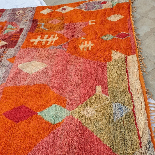 With bold reds and oranges, our Boujad rugs feature tribal patterns, ideal for dining rooms or high-traffic areas. Their durable wool resists spills, blending function with beauty.