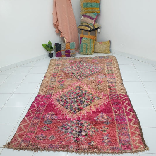 Moroccan Rug Pink & Orange Vintage Style Newly made Boujaad | 10x8 Ft | 3x2,40 m | JALLANA | 100% wool handmade