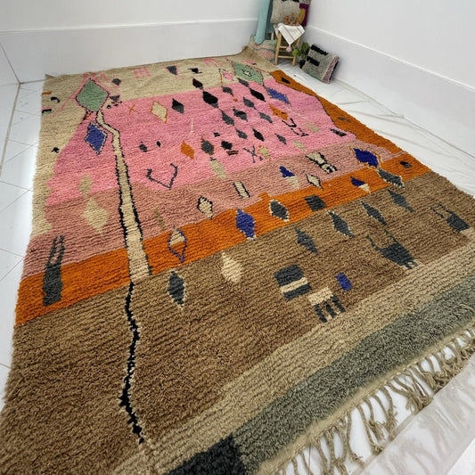 Ultra Fluffy Moroccan Beni rug | 10x8'7 Ft | 3x2,60 m | MIBELADA | Moroccan Colorful Beni Mrirt Rug | 100% wool handmade