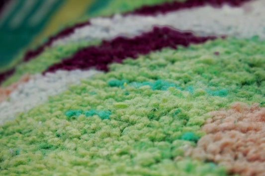From yellow Moroccan rugs to rainbow lattice designs, our Azilal rugs brighten living rooms or hallways as vibrant Moroccan runner rugs. Each unique piece showcases the weaver’s creativity, perfect for boho-chic spaces. Explore colorful Azilal rugs now.