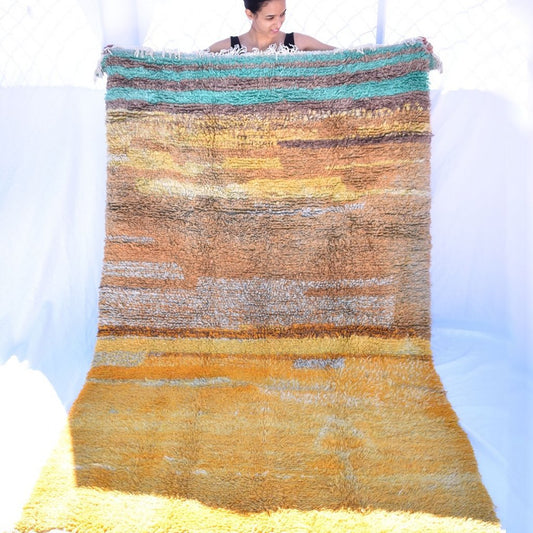 GHOROB | 8x5 Ft | 2.5x1.5 m | Moroccan Golden Rug | 100% wool handmade