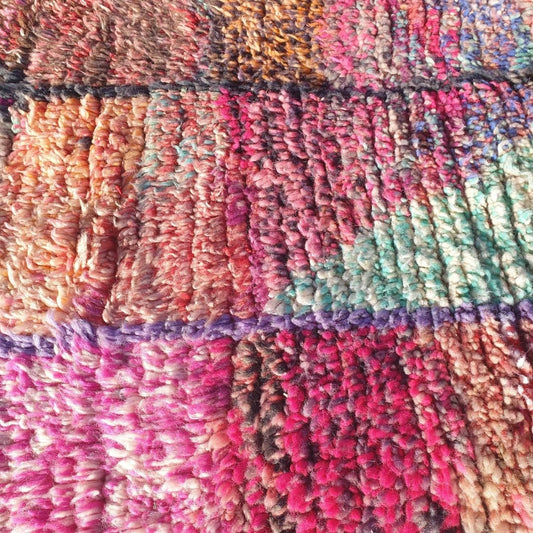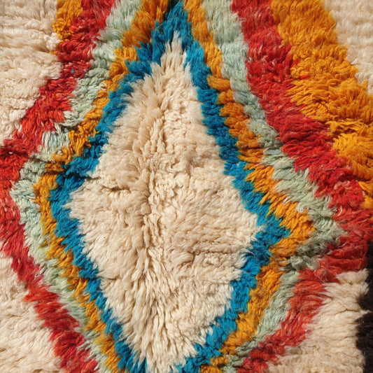 From yellow Moroccan rugs to rainbow lattice designs, our Azilal rugs brighten living rooms or hallways as vibrant Moroccan runner rugs. Each unique piece showcases the weaver’s creativity, perfect for boho-chic spaces. Explore colorful Azilal rugs now.