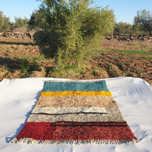 Zinaga - Moroccan Boujad Berber Rug | Colorful Authentic Handmade Bedroom Rug | 8'4x4'7 Ft | 2,55x1,44 m