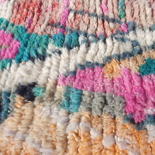 From yellow Moroccan rugs to rainbow lattice designs, our Azilal rugs brighten living rooms or hallways as vibrant Moroccan runner rugs. Each unique piece showcases the weaver’s creativity, perfect for boho-chic spaces. Explore colorful Azilal rugs now.