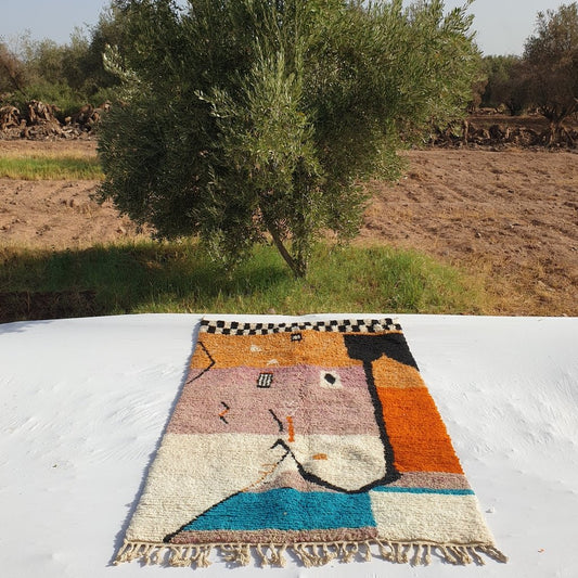 MOROCCAN BOUJAAD RUG | Moroccan Berber Rug | Colorful Rug Moroccan Carpet | Authentic Handmade Berber Bedroom Rugs | 7'9x4'9 Ft | 2,40x1,48 m