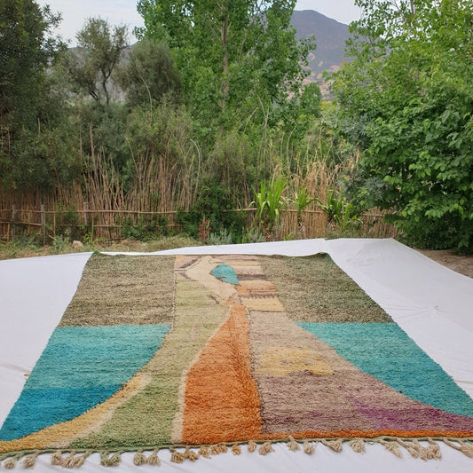 Miala - BENI OUARAIN Moroccan colorful Rug for Bedroom | Moroccan High Pile Area Rug Berber Authentic Wool | 5x3'6 Ft | 152x110 cm