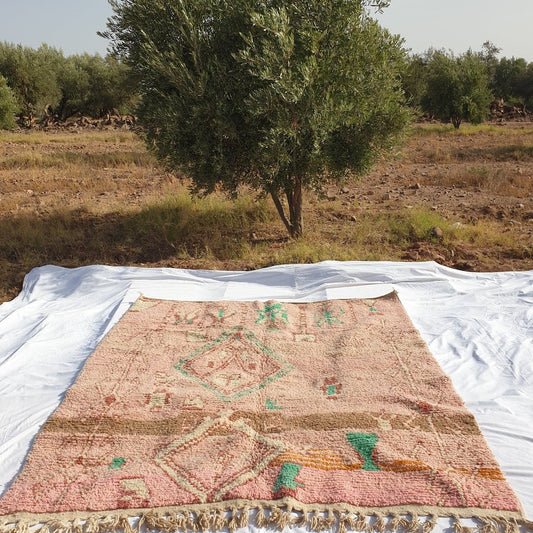 Beni Ouarain Moroccan Rug Orange Pink Authentic and Soft | 9'9 x 6'7 Ft | 3x2 m | JABAL | 100% wool handmade