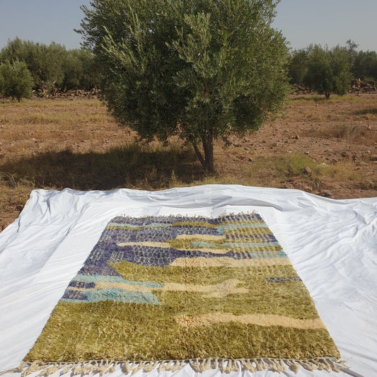 Moroccan Beni Ouarain Green & Blue Rug | KIZAM | 7'5 x 5'6 Ft | 2,3x1,7 m | 100% wool handmade