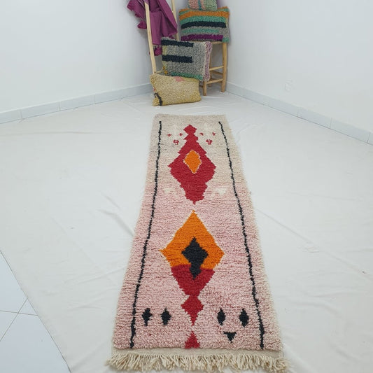 DMALA Runner | 9'6x2'5 Ft | 2,93x0,76 m | Moroccan Colorful Rug | 100% wool handmade
