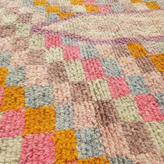 Benabia - Boujad 5x9 Rug Multicolored Checkered Wool Area Rug | 5'15x9'22 Ft | 157x281 cm