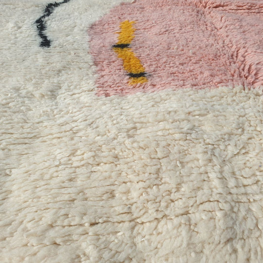 Layba - Playful Pink Yellow Boujad Rug 6x10 ft - Vibrant Handwoven Moroccan Berber Abstract Area Rug for Boho Living | 6'30x10'30 Ft | 192x314 cm