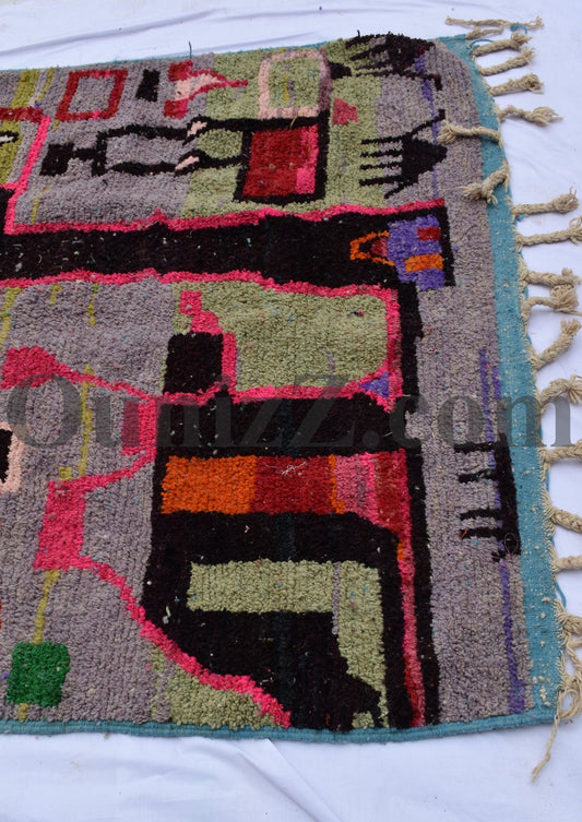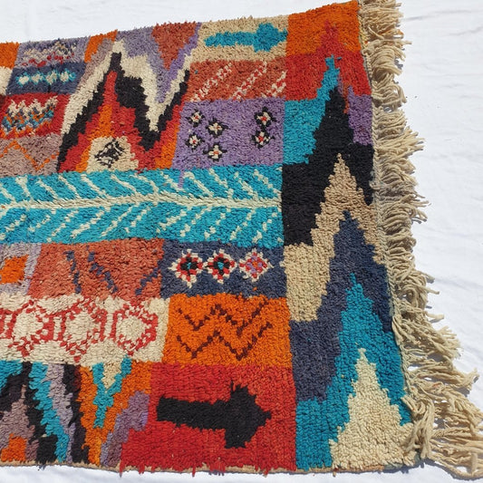 Dwilat - Moroccan Rug Boujaad | Colorful Authentic Berber Handmade Bedroom Rug | 7'61x5'05 Ft | 2,32x1,54 m