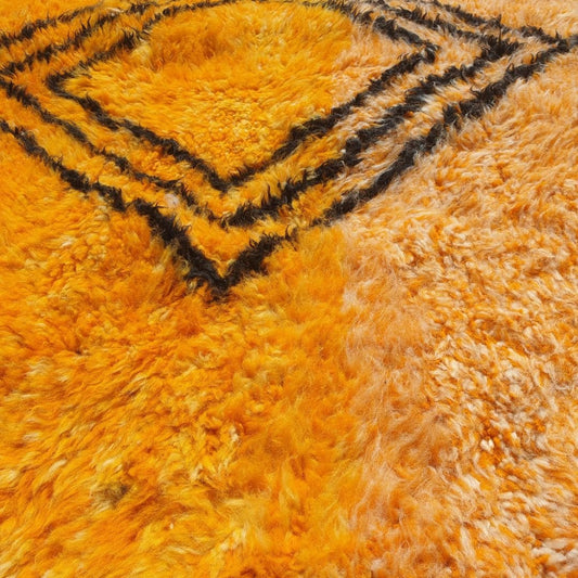 Lamane | Luxurious Golden Yellow 6x9 Moroccan Rug Plush Beni Mrirt Ultra Soft | Authentic Berber wool Beni Rug | 6'63x9'71 Ft | 202x296 cm