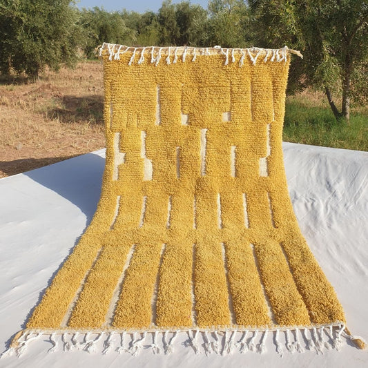 Mitracia | Yellow Moroccan Rug 5x8 - Handmade Beni Ourain Wool Rug | 5'02x8'36 ft | 153x255 cm