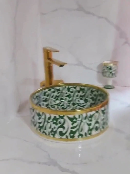 Khenifra - Vanité d'évier en céramique de salle de bain en céramique peinte à la main verte - élégante, personnalisable et sans plomb - (ETAFS)