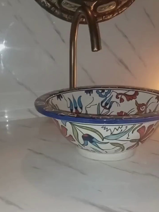 Tetouan - Vanité d'évier en céramique peinte à la main colorée - élégant, personnalisable et sans plomb - (ETAFS)